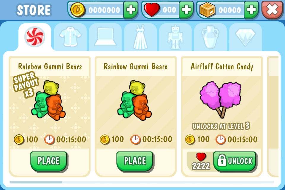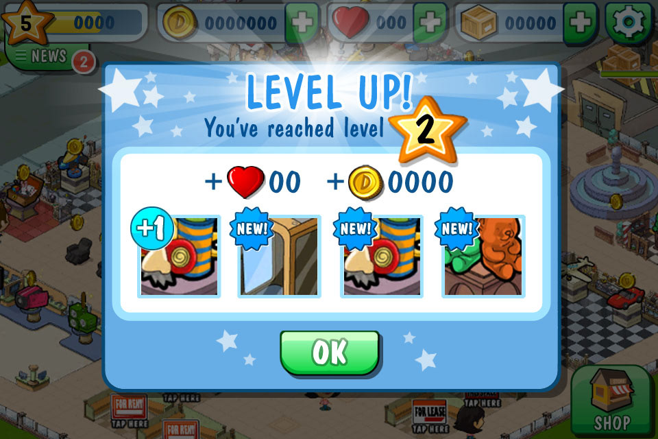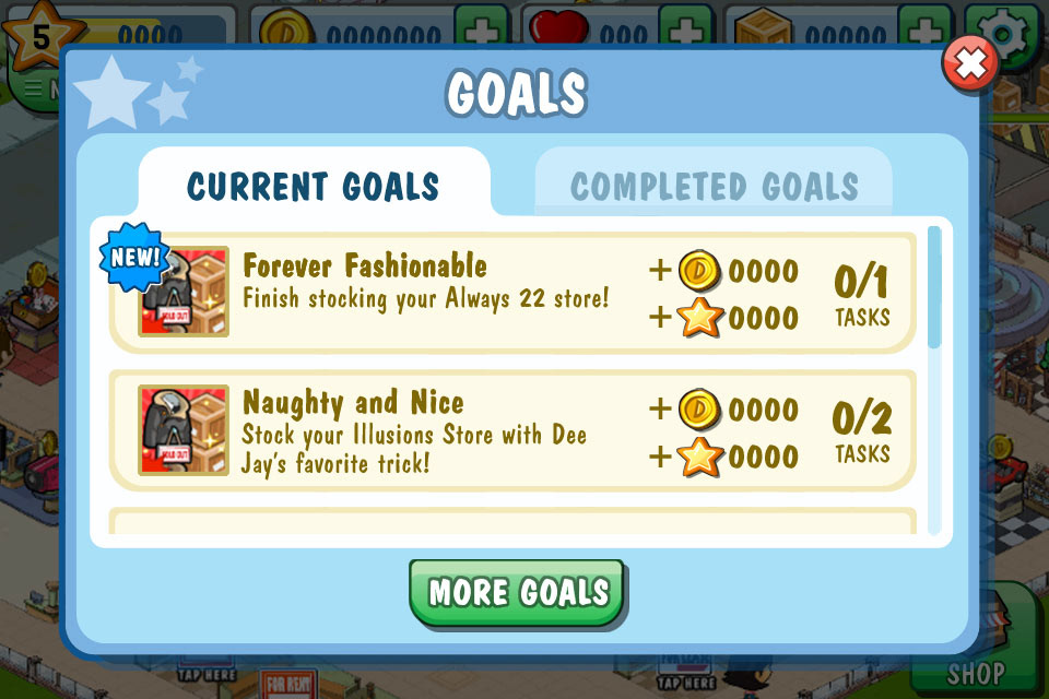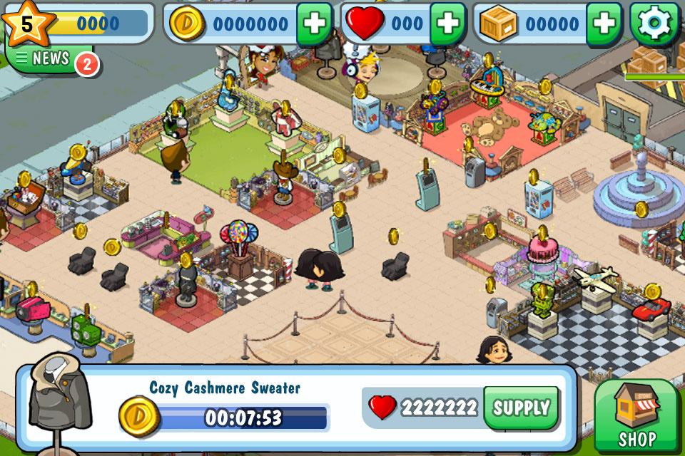 HUD and UI design for Mall Stars for iPhone by Playfirst.